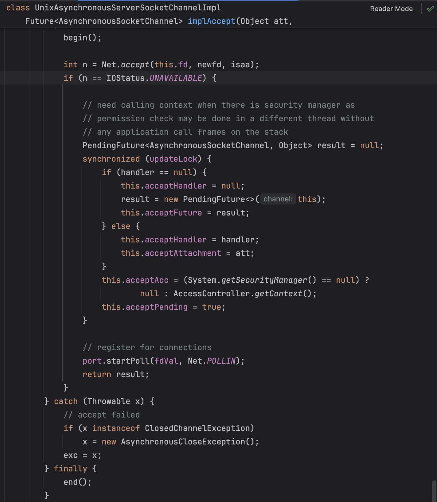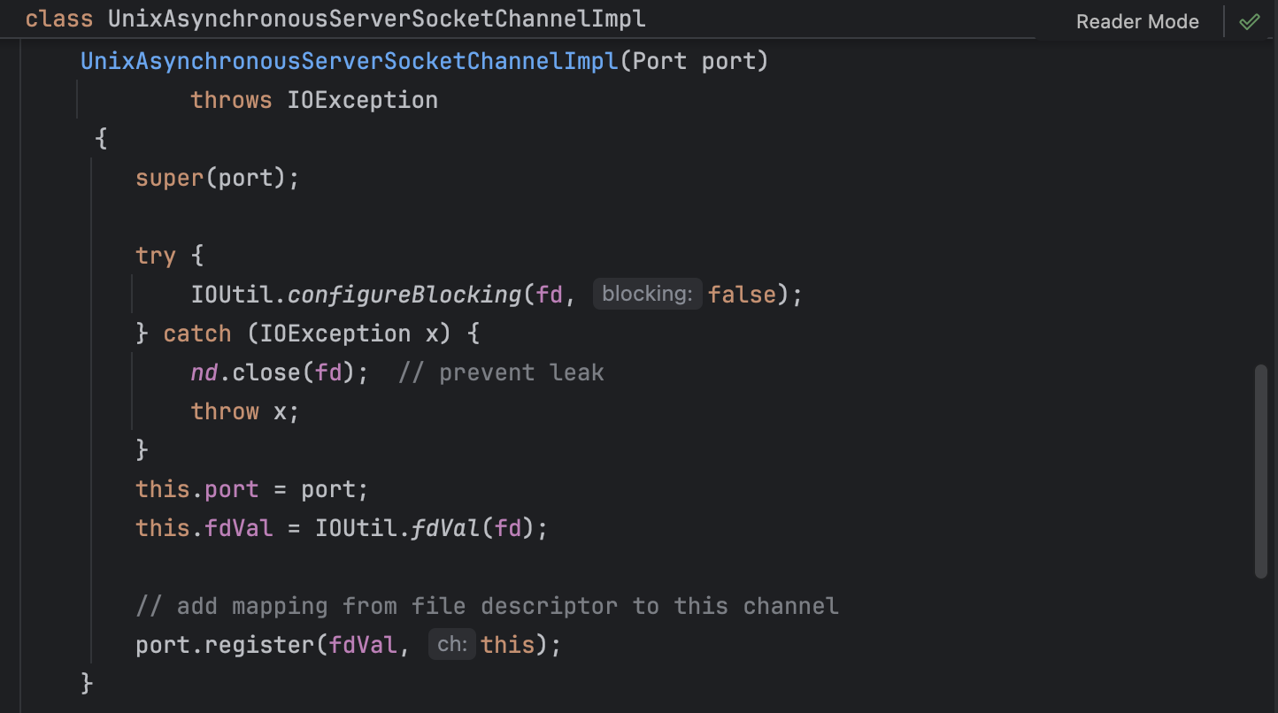 빈 파라미터로 호출한 open() 함수는 DefaultAsynchronousChannelProvider를 사용하는데, 이는 맥OS에서 BsdAsynchrnousChannelProvider이다.